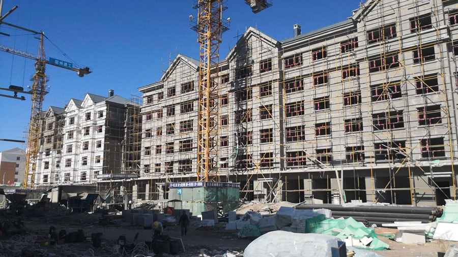 呼倫貝爾地處內蒙古高原東北部,地勢偏高,日照強烈,氣候多變,復雜的氣候決定了建筑的要求,萬和世家方面要求真石漆產品能耐高溫,耐酸堿,抗紫外線,在復雜的環境中能夠持久的保持色澤亮麗,在對各品牌的樣板進行試驗和檢測之后,最終選定了久巴荷凈真石漆作為建筑外墻主材。