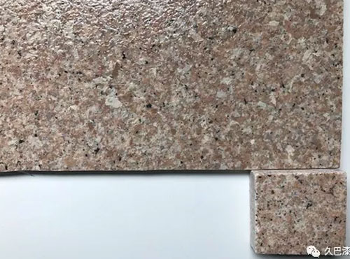 項目選用的是久巴靚凈多彩漆,它是由丙烯酸樹脂乳液和彈性樹脂溶液為基料,通過白色石英砂和人工煅燒彩砂的合理配比及色彩搭配,屬于水性環保涂料。經噴涂的成品能突顯出古樸、秀美、典雅等效果,且花崗紋理自然流暢,表面光潔、柔和、滑爽、手感良好。