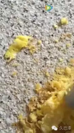體驗(yàn)3、在久巴真石漆樣板上面的雞蛋,用勺子輕易可刮掉,真石漆表面漆膜完好無損。因?yàn)榫冒蛢粝盗蟹率?,表面光滑,在物體表層形成一層致密的保護(hù)膜,產(chǎn)生疏水,疏油的效果。不用擔(dān)心油污、茶漬等污漬,一抹就干凈。