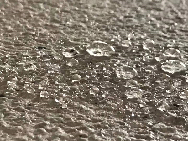 久巴“凈”系列仿石漆,在漆膜完全固化之后會形成一層致密的墻體保護膜,表面張力達到指數高達130+σ( 疏水性是測量對一滴水表面斥力超120度,擋風玻璃表面水珠斥力達到110度即有疏水性),涂膜完全固化狀態不易揮發、不易與其它物質相互作用,遇水如荷葉般、如鴨毛般滴落,擁有超高的自潔性,不怕回南天、不怕雨水。