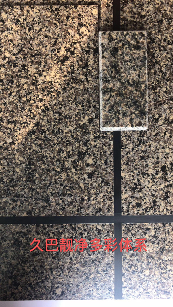 在眾多的產品中,久巴潔凈水包砂這一款產品是最受大眾喜歡的,它是目前仿石漆相似度最高的產品體系,主要以模仿火燒石、銹石、色彩豐富的天然花崗巖為主,并具有耐酸堿、抗紫外線、不老化褪色、耐高溫不燃燒、不滲雨水、表面超自潔、防止小廣告粘貼等諸多功能性。