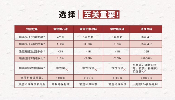 久巴5D潔凈恒溫石漆更清潔:極致簡單的涂層,納米高分子 材料形成極固致密涂膜后,讓墻面污漬更容易清潔,不粘油漆、膠水、油性記 號筆等等污漬。用了久巴這款恒溫石漆就不怕孩子再做“畫師”了,輕輕松松可以擦拭掉墻面的顏色筆,油墨筆,油漬也可以輕松去掉。